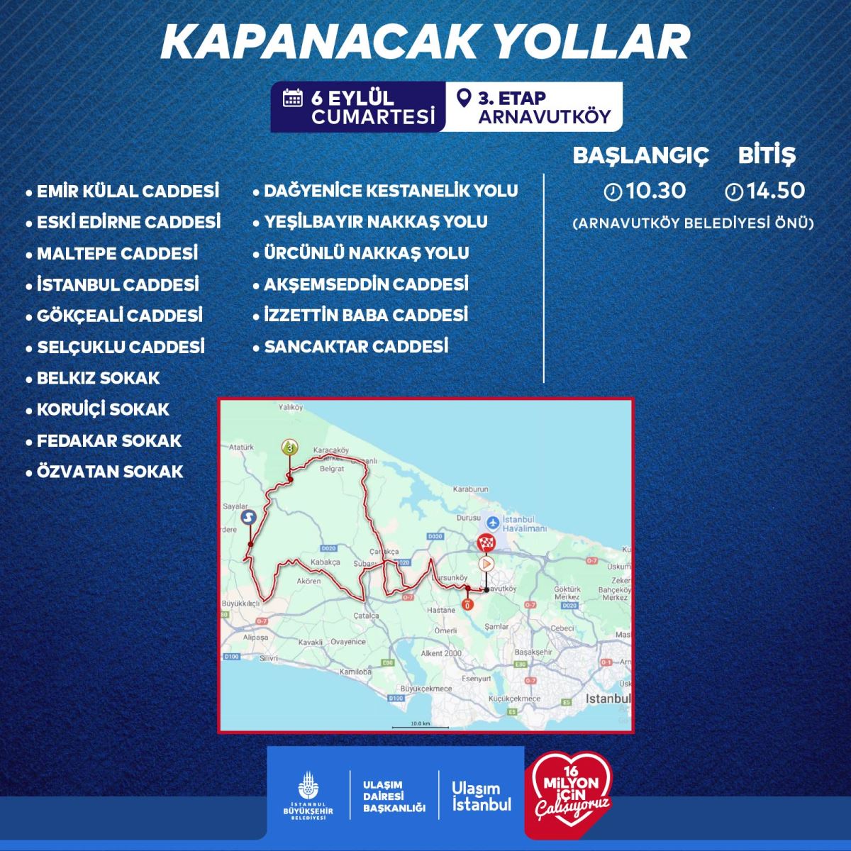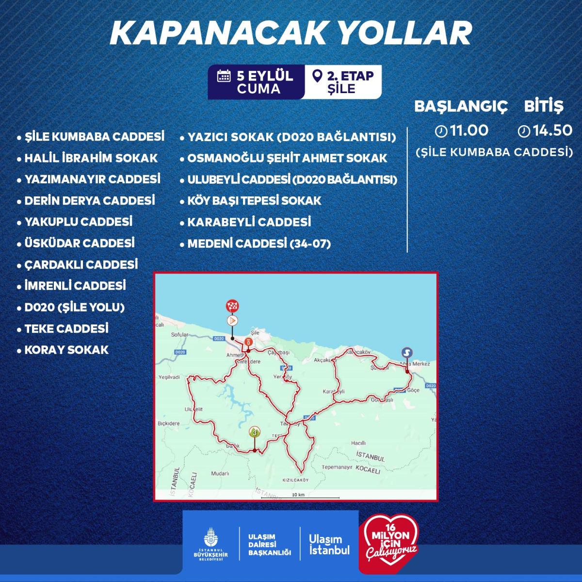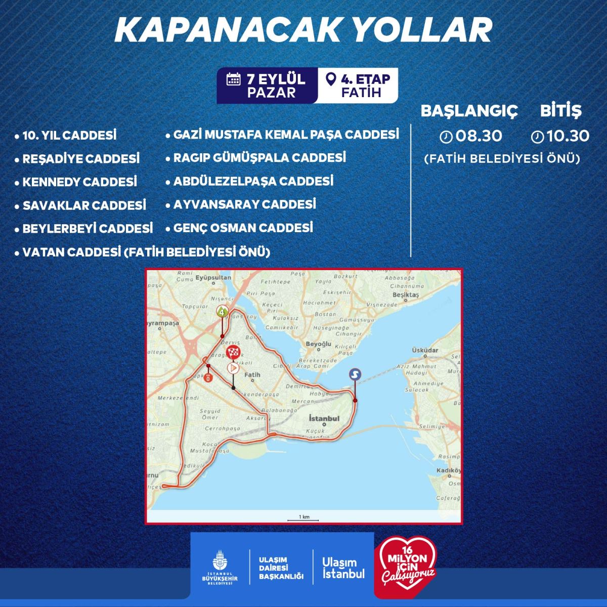 4-7 Eylül 2025 tarihleri arasında İstanbul'da yapılacak ''Tour of İstanbul 2025'' yarışması nedeniyle trafiğe kapatılacak yollar görsellerdedir.